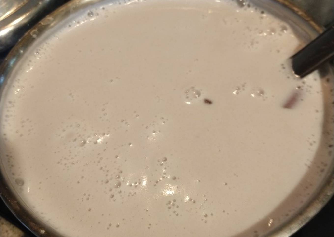 - Utiliza la otra taza de agua para colarla y pon el batido a fuego bajo junto con la raja de canela hasta que hierva 2 minutos