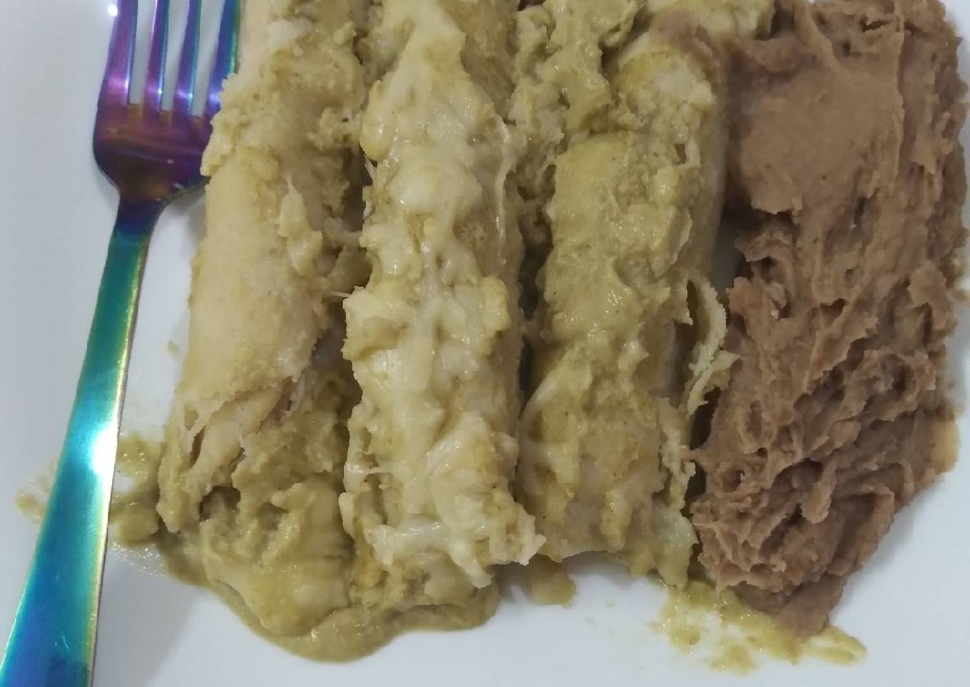 - Sacar las enchiladas y servir con los frijoles refritos.