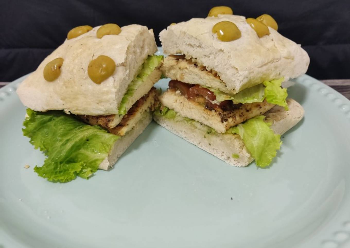 Una ciabata artesanal con aceitunas elaborada a partir de un poolish.