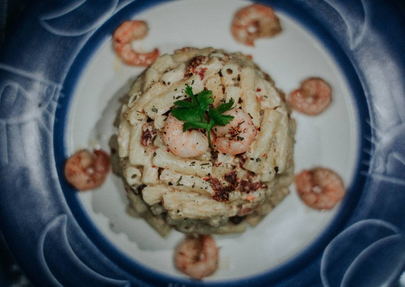 Pasta en salsa de queso mozzarella con camarones