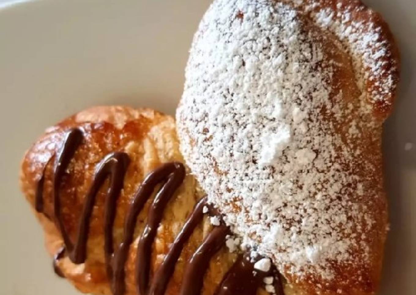 - Hacemos la forma tradicional del cuernito, este puede ser sin relleno, rellenado dulce o salado, dejamos leudar, barnizamos con huevo